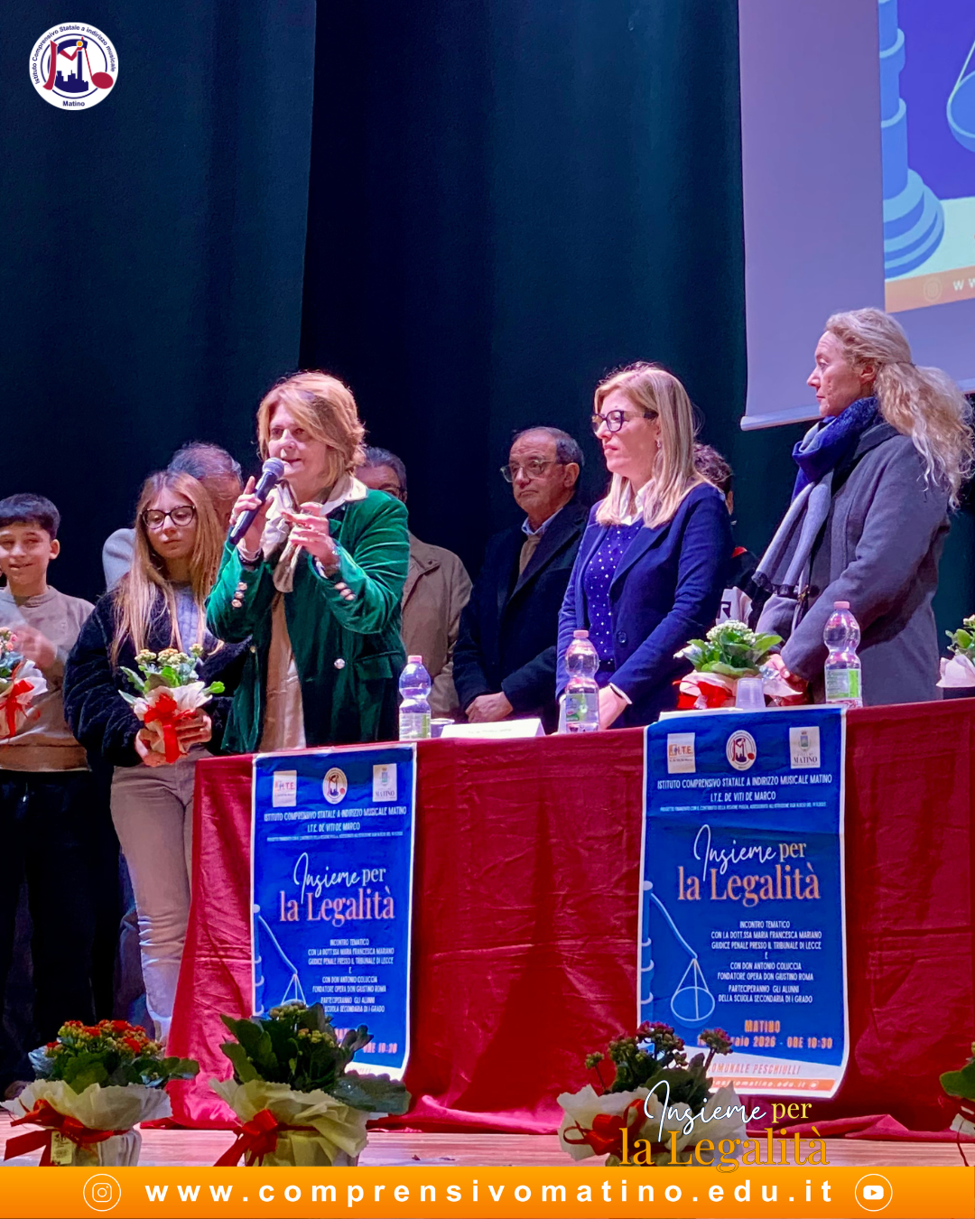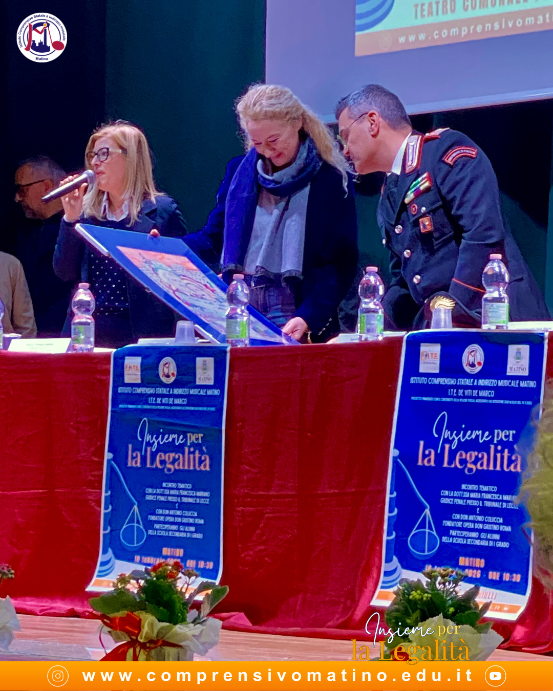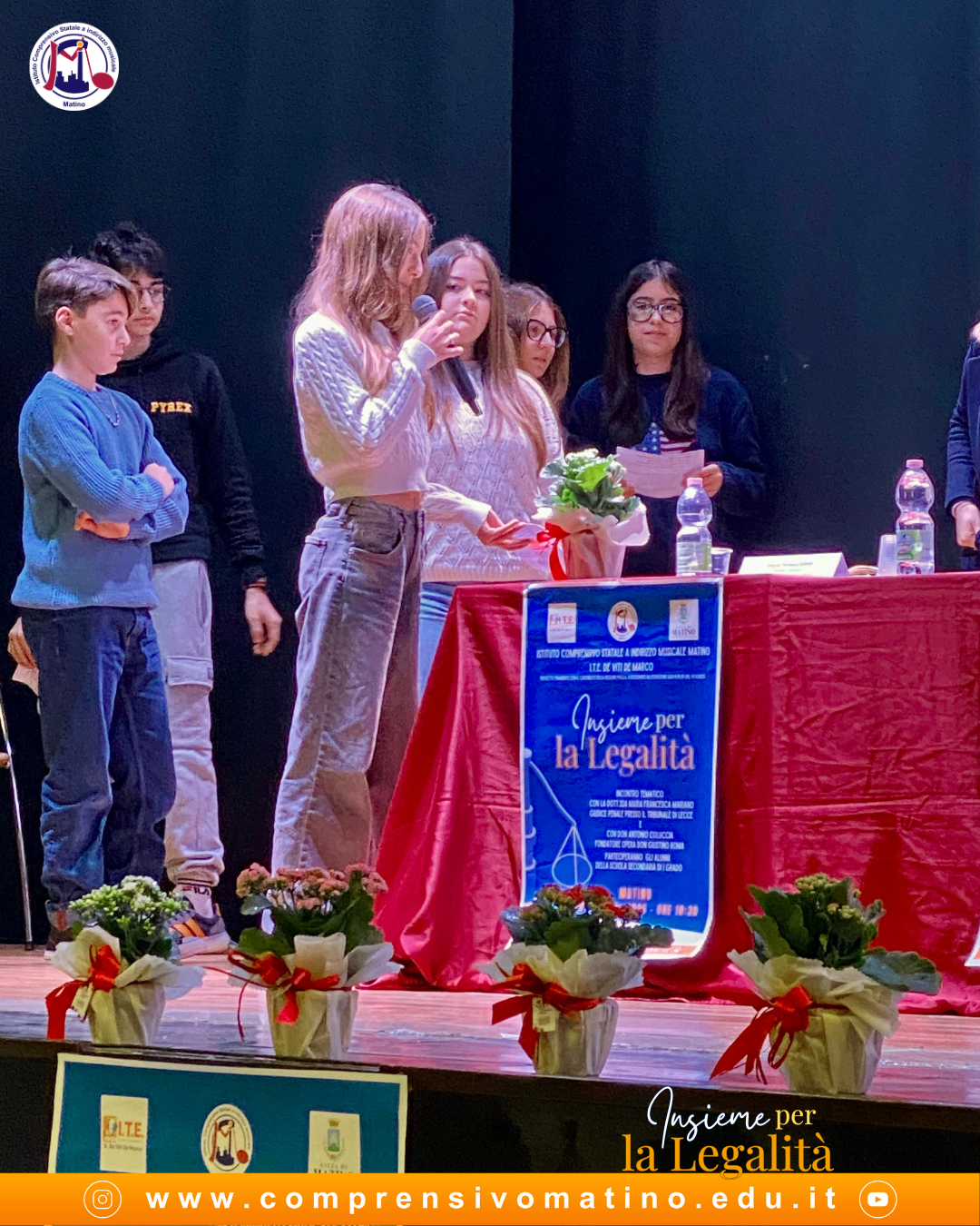 L’evento si è aperto con l’Inno nazionale eseguito dall’orchestra dell’I.C. Matino e ha visto la partecipazione di autorevoli relatori: la dott.ssa Maria Francesca Mariano, giudice del Tribunale penale di Lecce e l’ispettore Antonio Melcarne della Questura di Lecce, che ha approfondito il tema del bullismo e cyberbullismo e delle loro conseguenze.